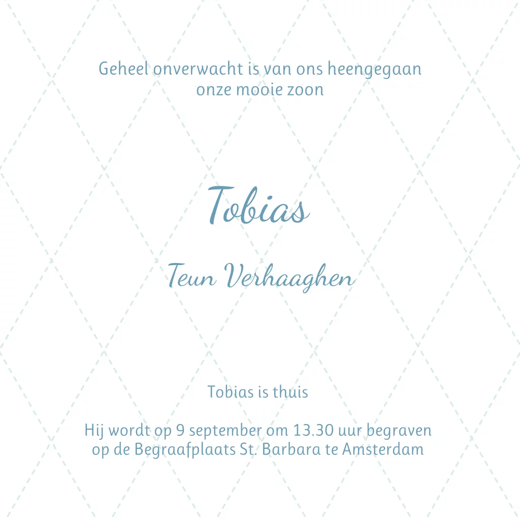 Mooie kinder-rouwkaart voor jongen met lieve vlindertjes op onderbroken wiebertjes dessin.