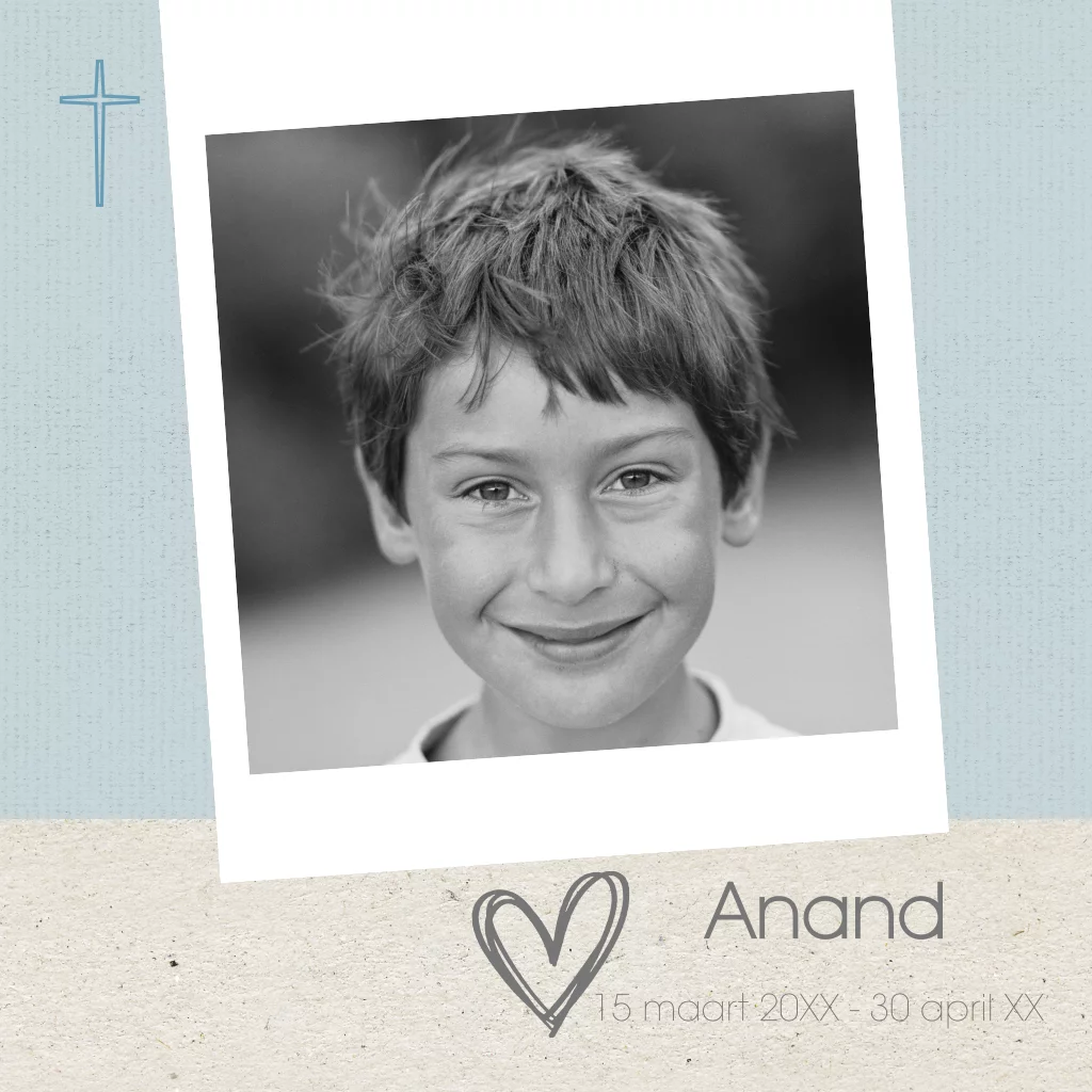 Mooi rouwkaartje voor baby en kind met foto,kraft en hartjes