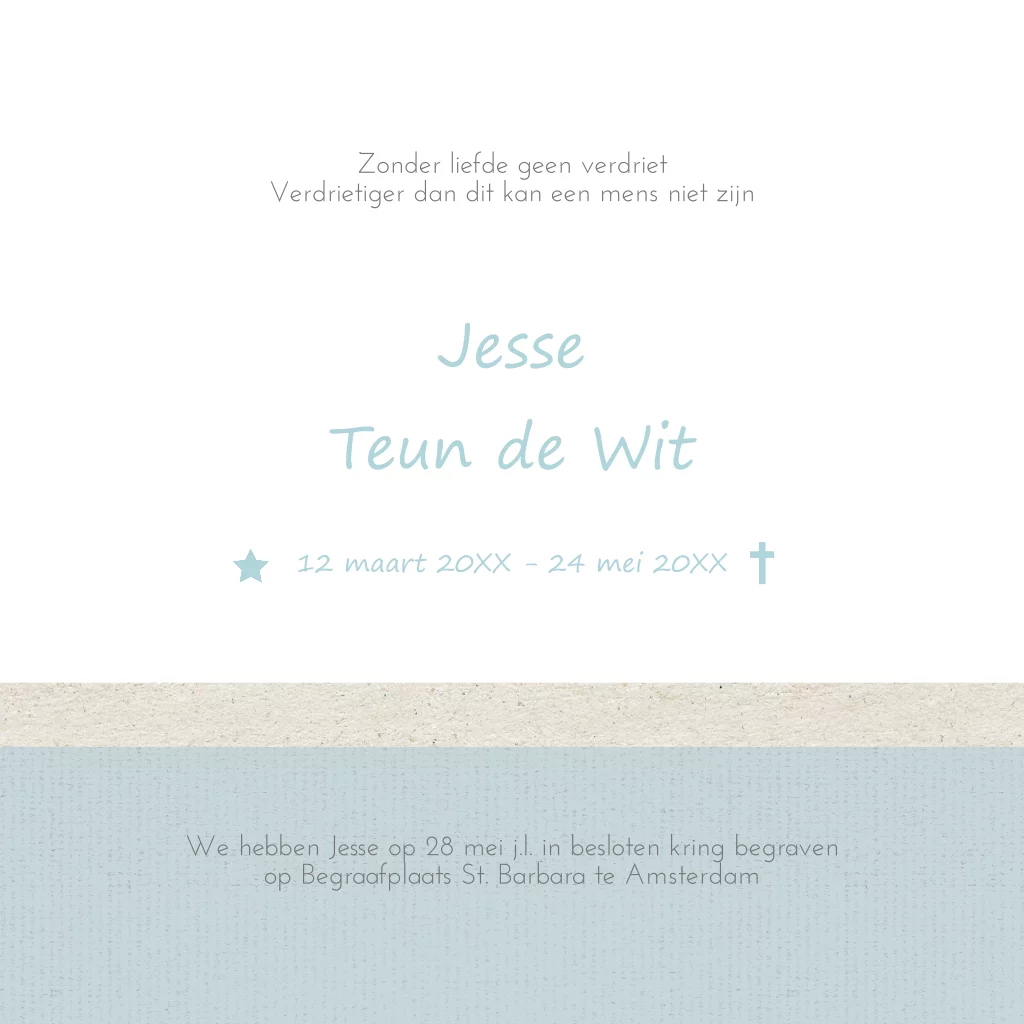 Mooi rouwkaartje voor baby en kind met paardebloem en kraft