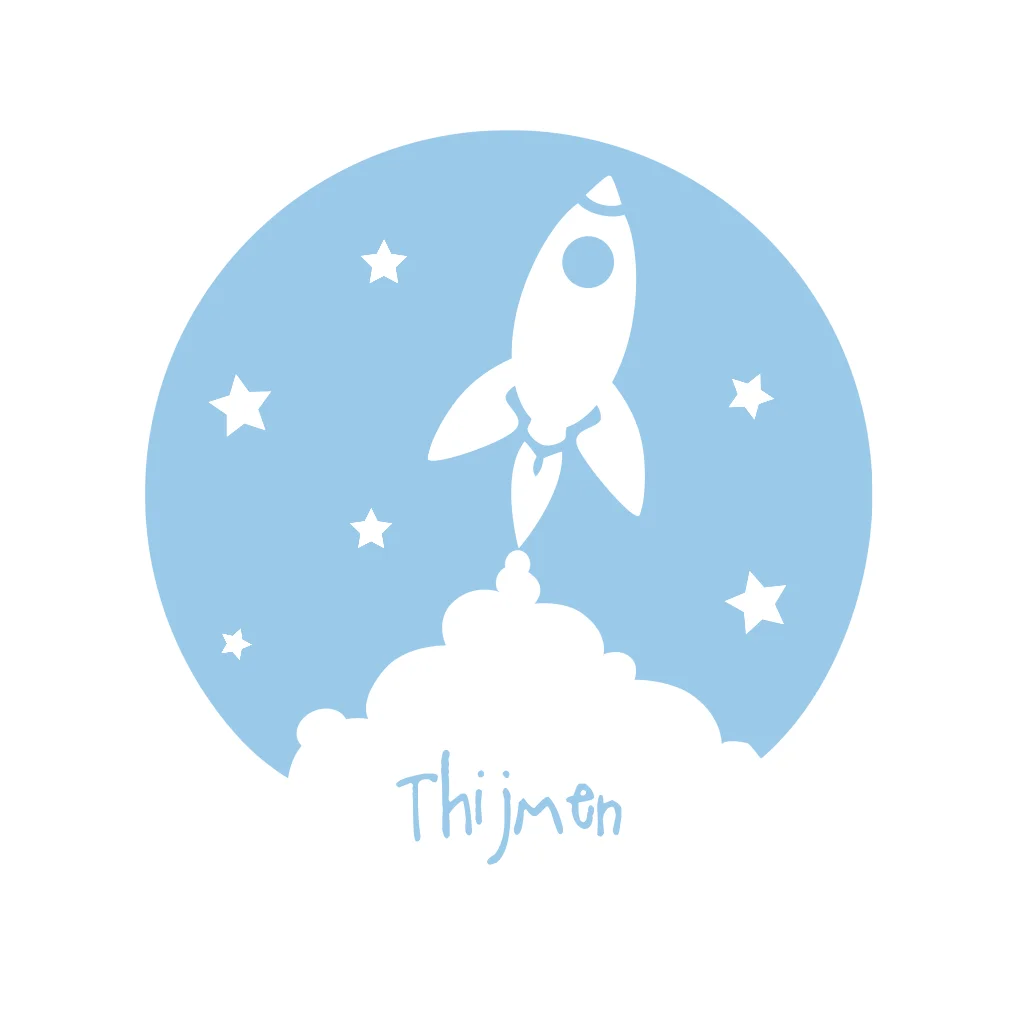 lief hip rouwkaartje voor een jongen met raket en sterretjes
