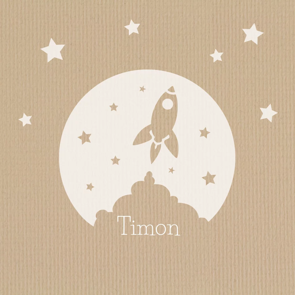 Mooie kinder-rouwkaart voor jongen met raket en sterren op kraftpapier.