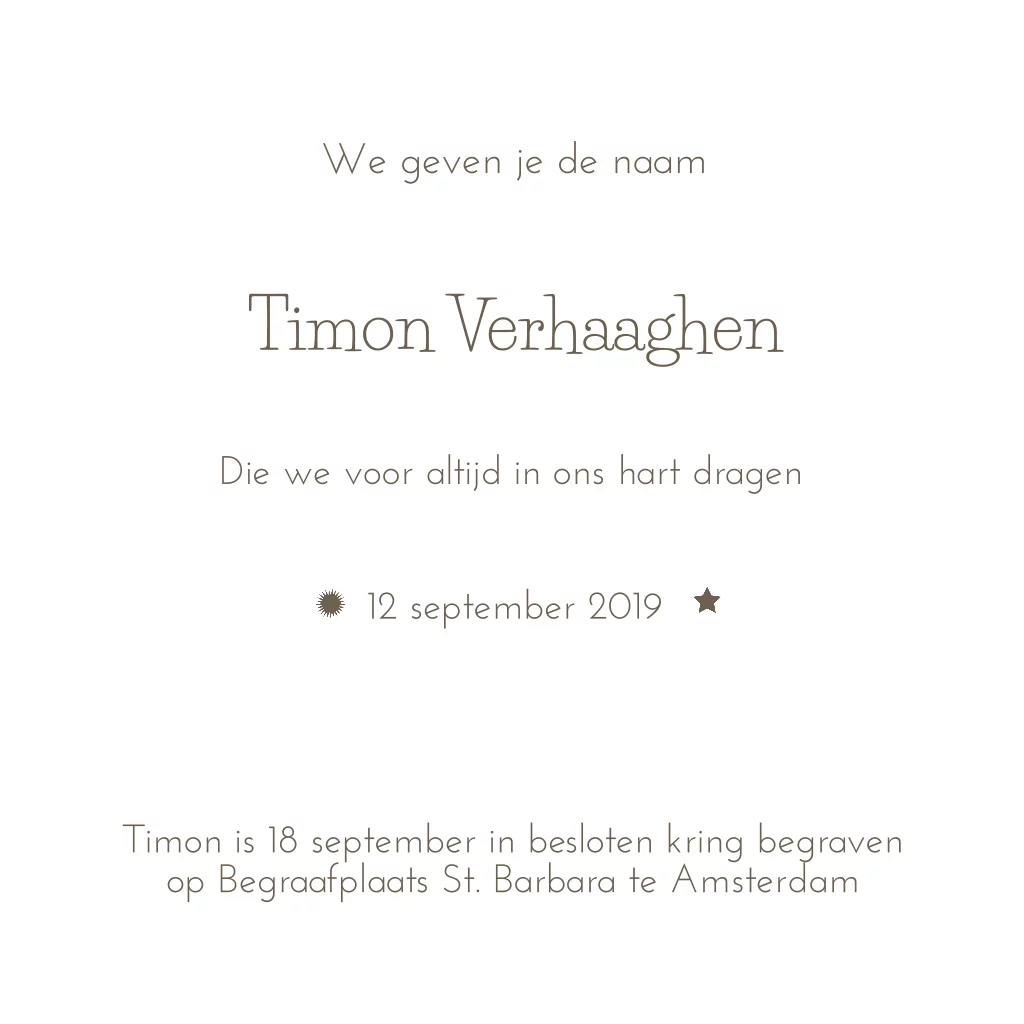 lief hip rouwkaartje voor een jongen met raket en sterretjes op kraft