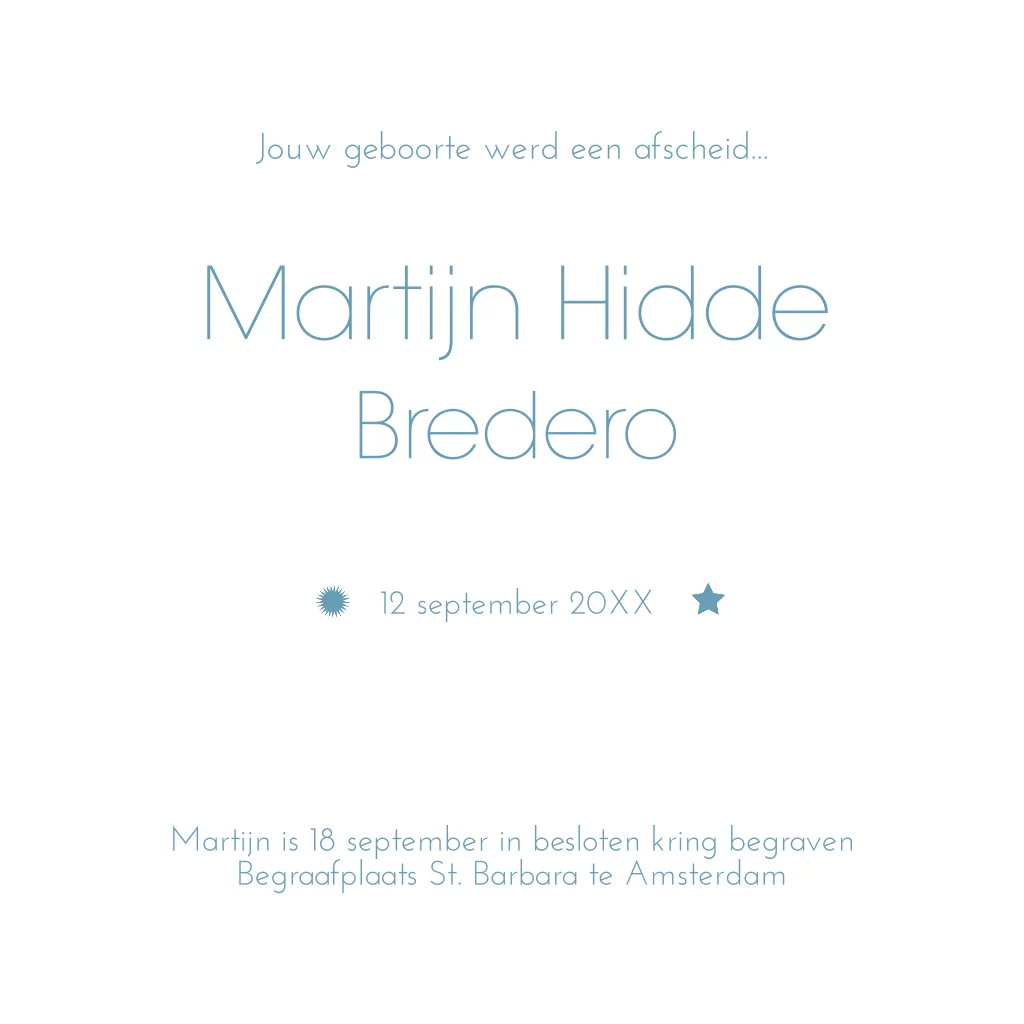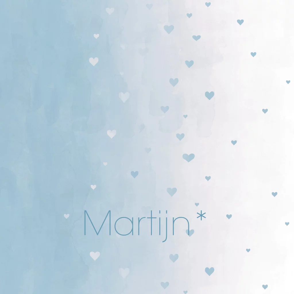 Mooie kinder-rouwkaart voor jongen met kleine hartjes op aquarel achtergrond. Stijlvolle rouwkaart voor vlinderkindje.