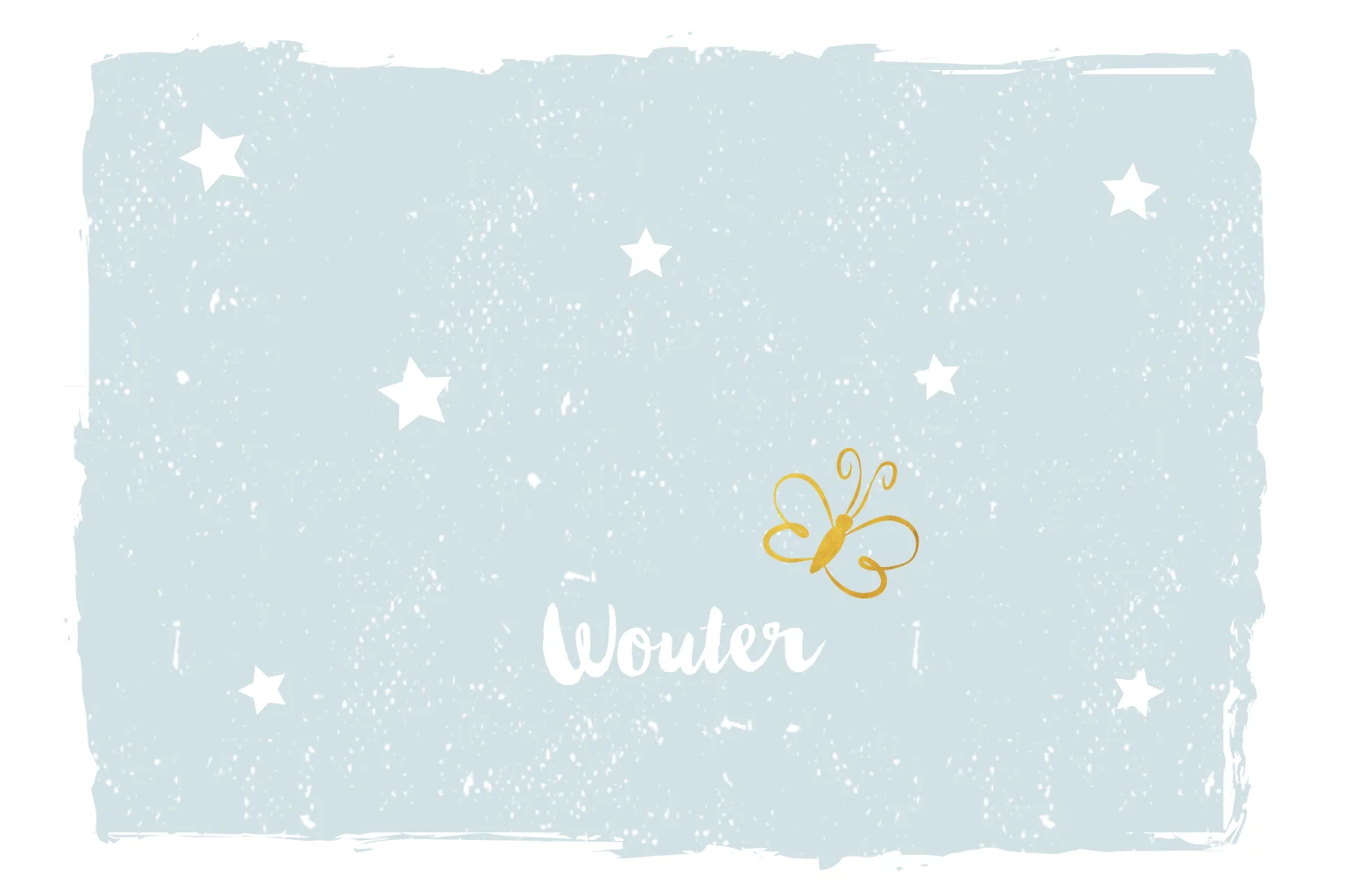 Mooi liggend rouwkaartje voor jongen met sterretjes en gouden vlindertjes in zachte kleuren.
