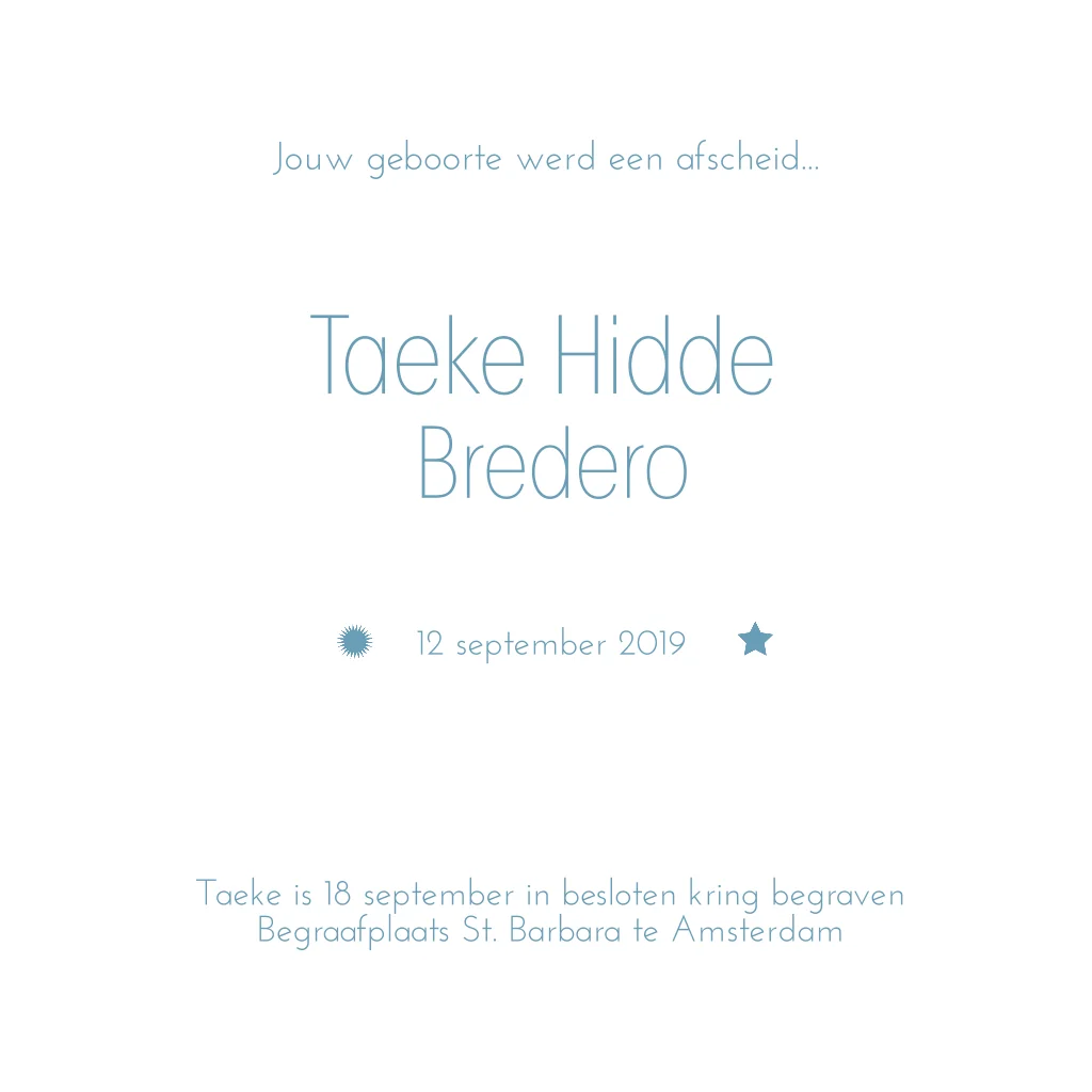 Mooie kinder-rouwkaart voor jongen met mooie getekende sterretjes op aquarel. Stijlvolle rouwkaart voor vlinderkindje.