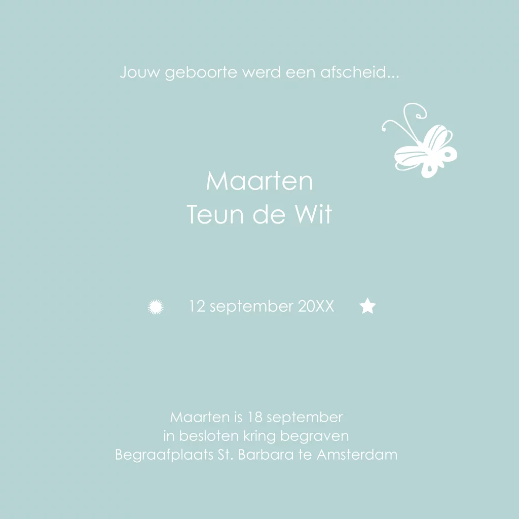Mooie stijlvolle rouwkaart voor jongetje of meisje met lieve vlindertjes.