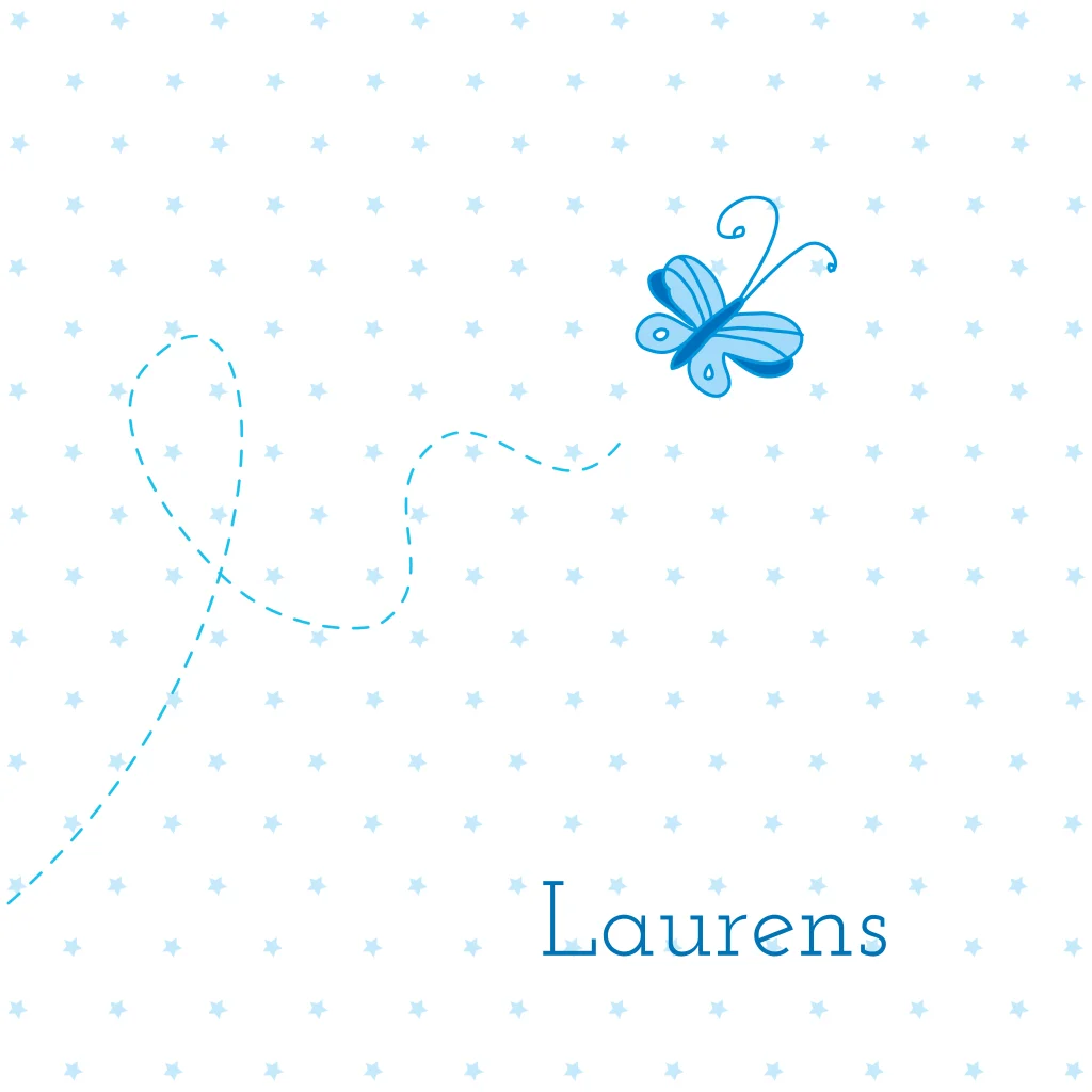 Mooie kinder-rouwkaart voor jongen met sterren en lieve vlindertjes.