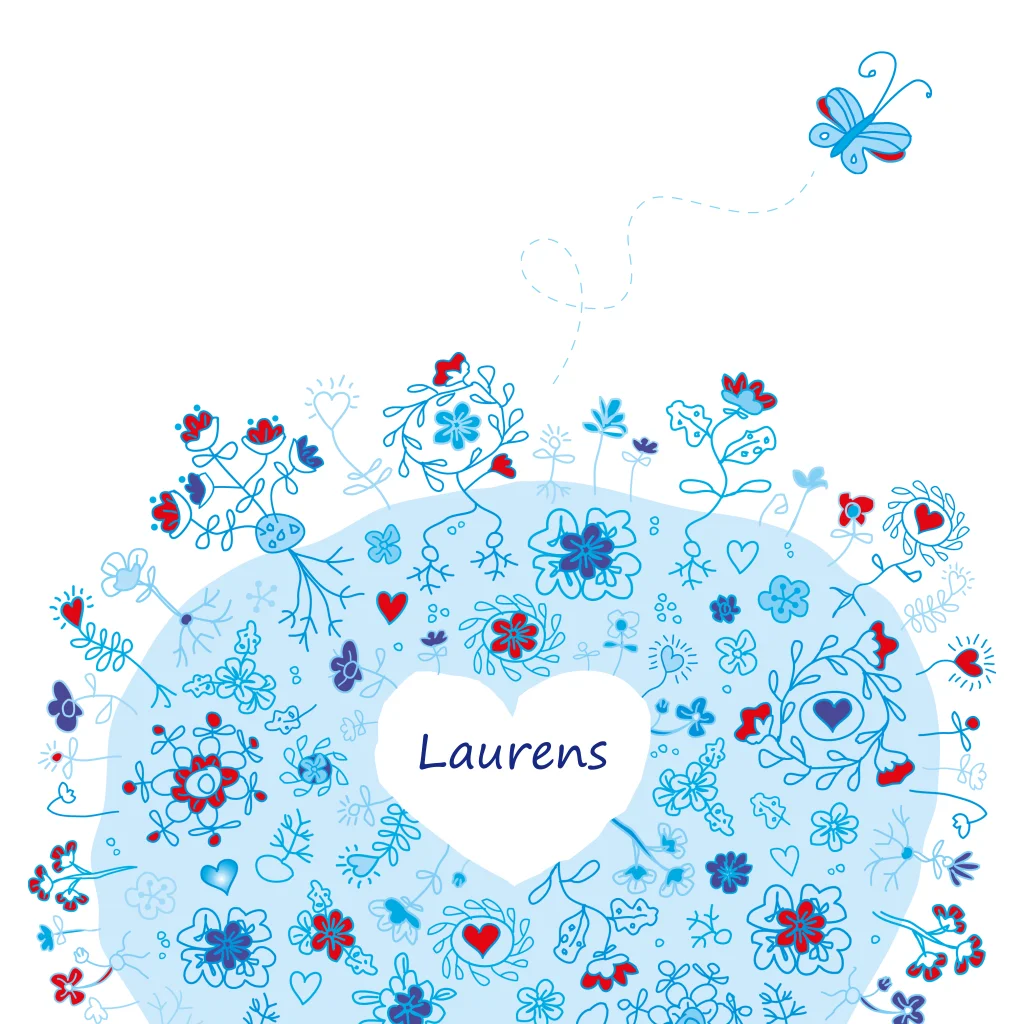 Mooie kinder-rouwkaart voor jongen met mooie wereldbol plantjes en vlindertjes.