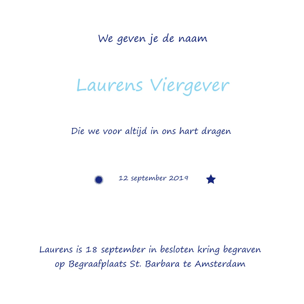 Stijlvolle rouwkaart voor vlinderkindje, de kleuren van de teksten kun je zelf aanpassen.