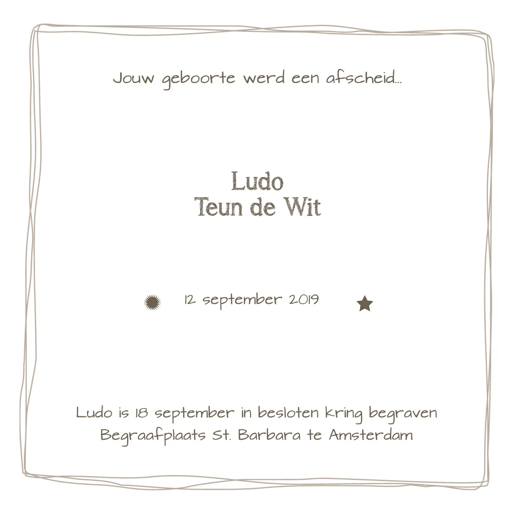 Stijlvolle rouwkaart voor vlinderkindje, de kleuren van de plantjes en teksten kun je zelf aanpassen.