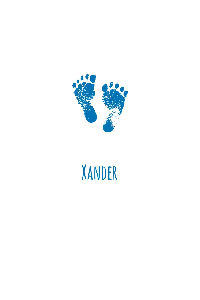 Mooie kinder-rouwkaart voor een jongen met stempel van voetafdrukjes.
