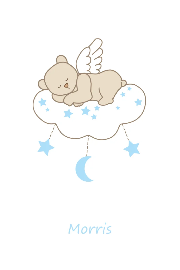 Mooie kinder-rouwkaart voor een jongen met slapend beertje op wolk met sterretjes.