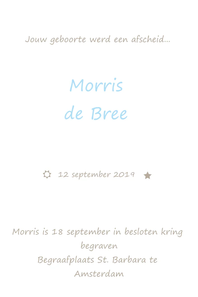 Stijlvolle rouwkaart voor vlinderkindje, de kleuren van de teksten kun je zelf aanpassen. Staand dubbel