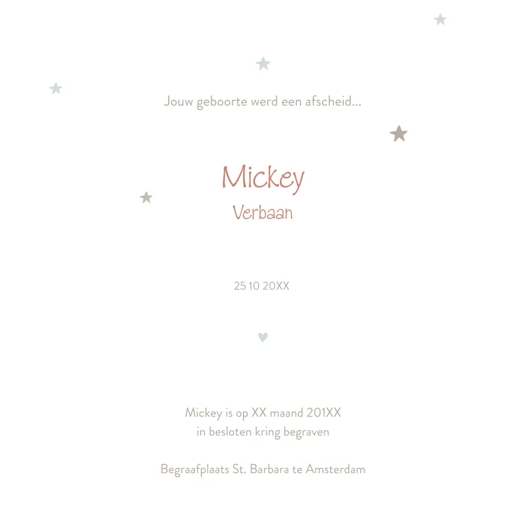 Een lief baby rouwkaartje met een waterverf illustratie lief baby olifantje en kleine sterretjes. Deze kaart kun je zelf bewerken.