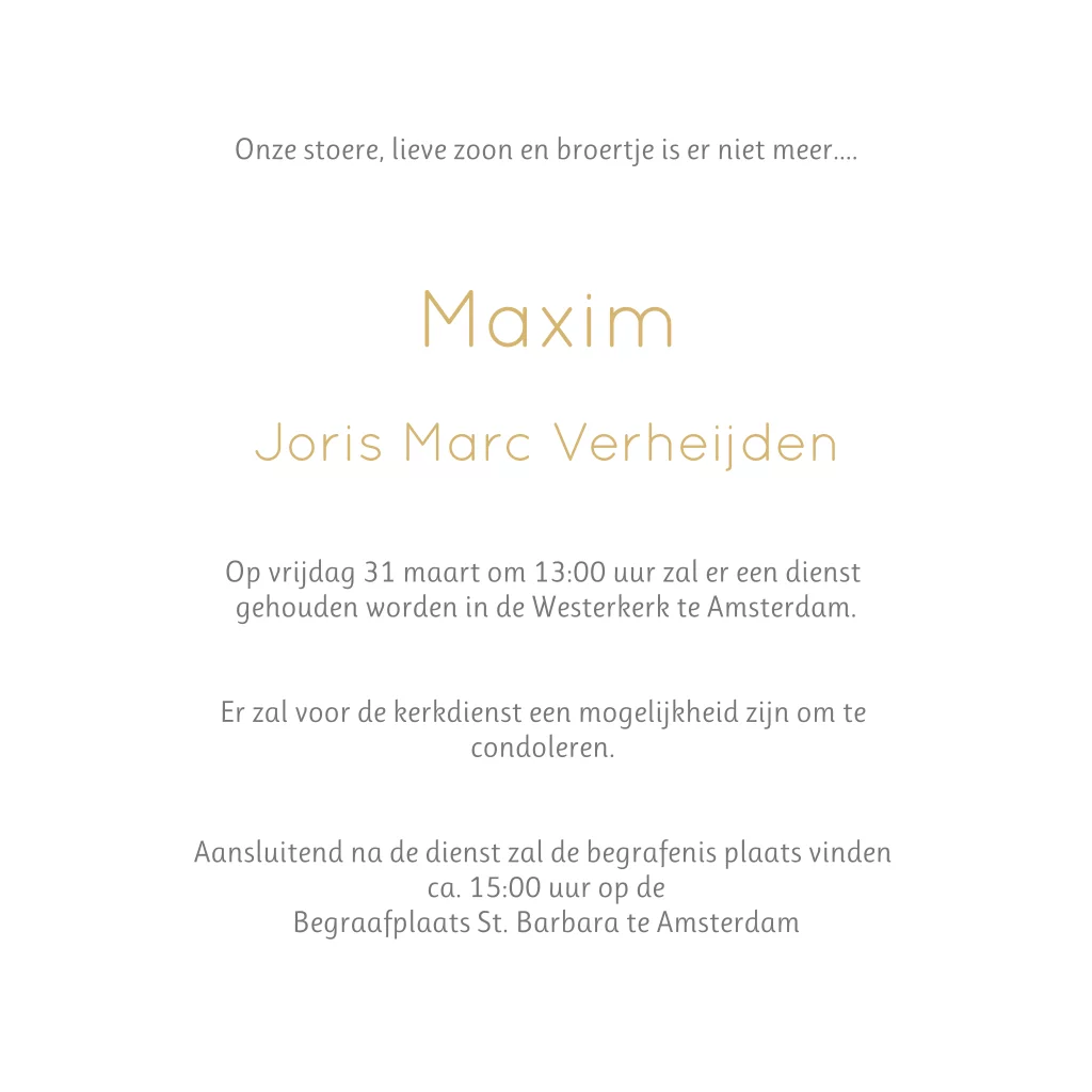 Sjieke unisex rouwkaart geschikt voor kinderen en baby's, plaats een mooie foto van jullie zoon of dochter.