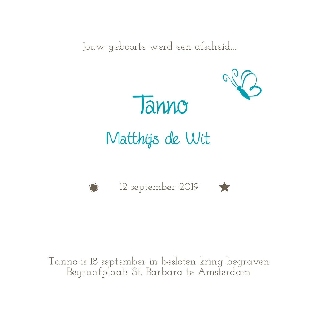Mooi rouwkaartje voor baby en kind met foto en vlindertje