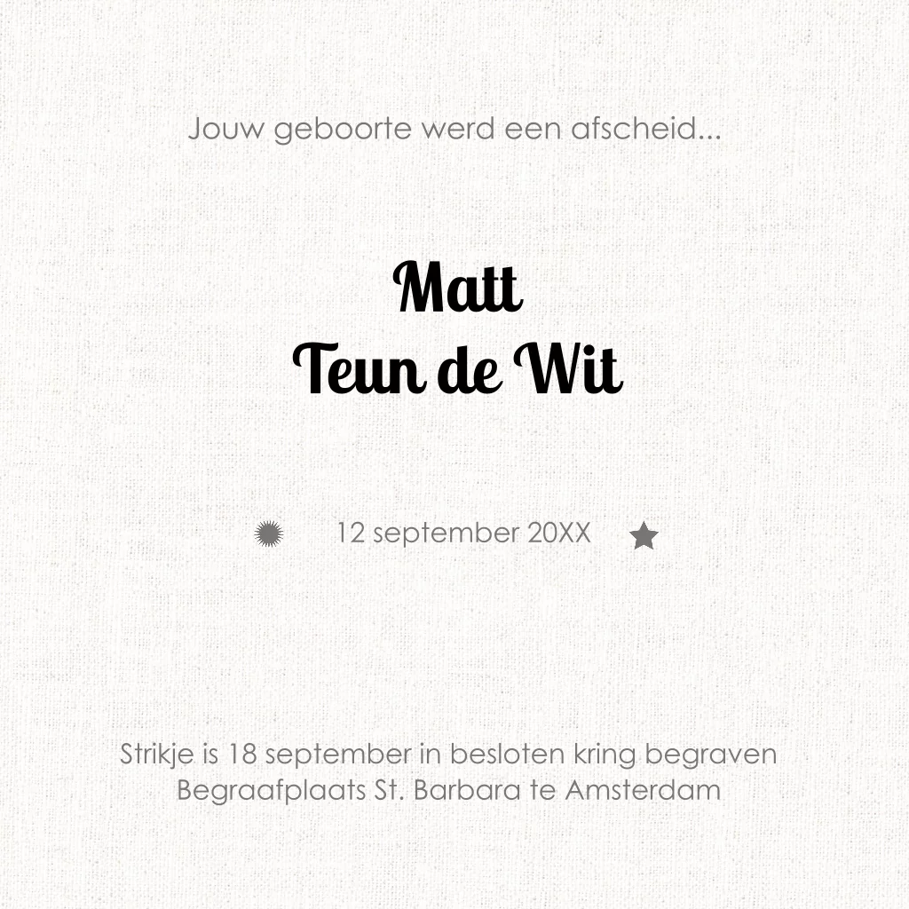 Mooi rouwkaartje voor baby en kind met strikje voor jongen