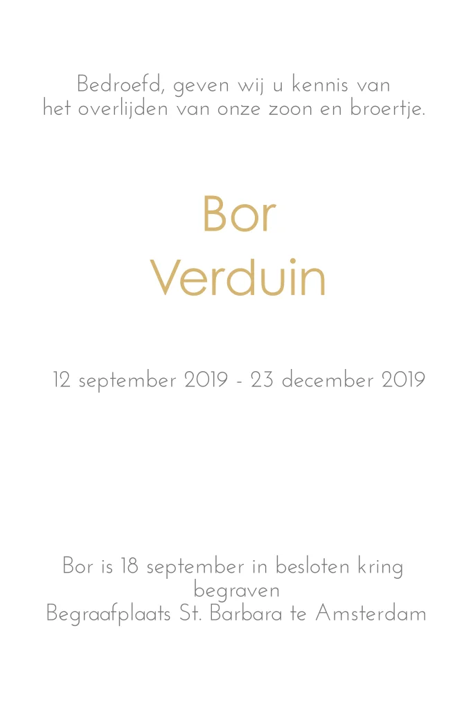 Lief modern rouwkaartje voor kind met goud folie sterretjes