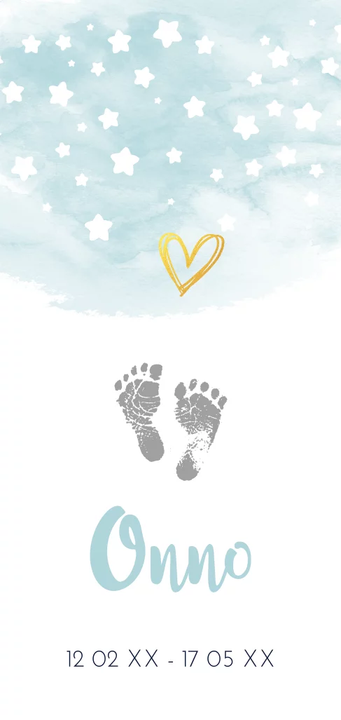 rouwkaartje sterretjes, voetafdrukje en aquarel