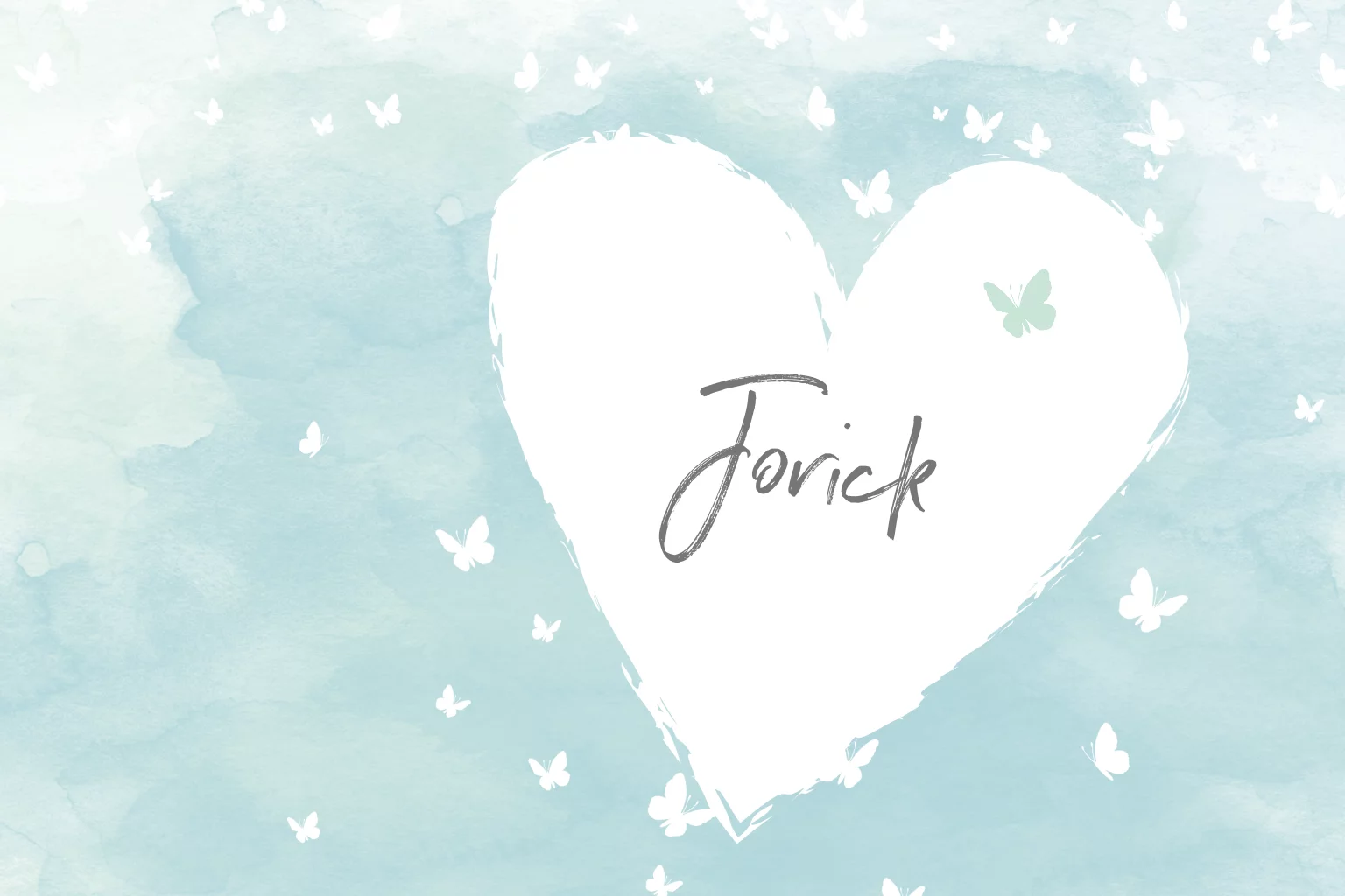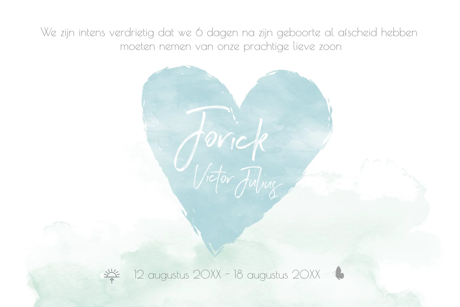 Lieve rouwkaart met confetti van kleine vlindertjes en hartjes met aquarel. Deze kaart kun je eenvoudig zelf personaliseren door de kleuren, teksten of afbeeldingen aan te passen.