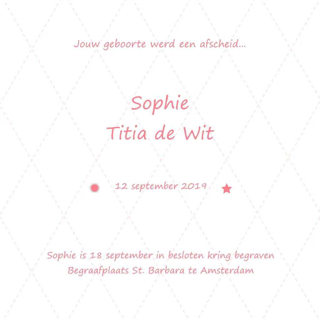 lief rouwkaartje voor meisje met vlinder en schuine ruit