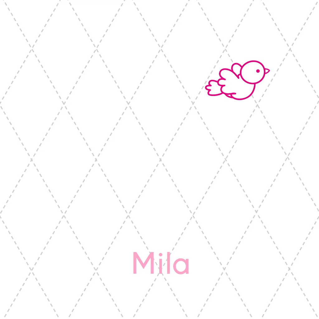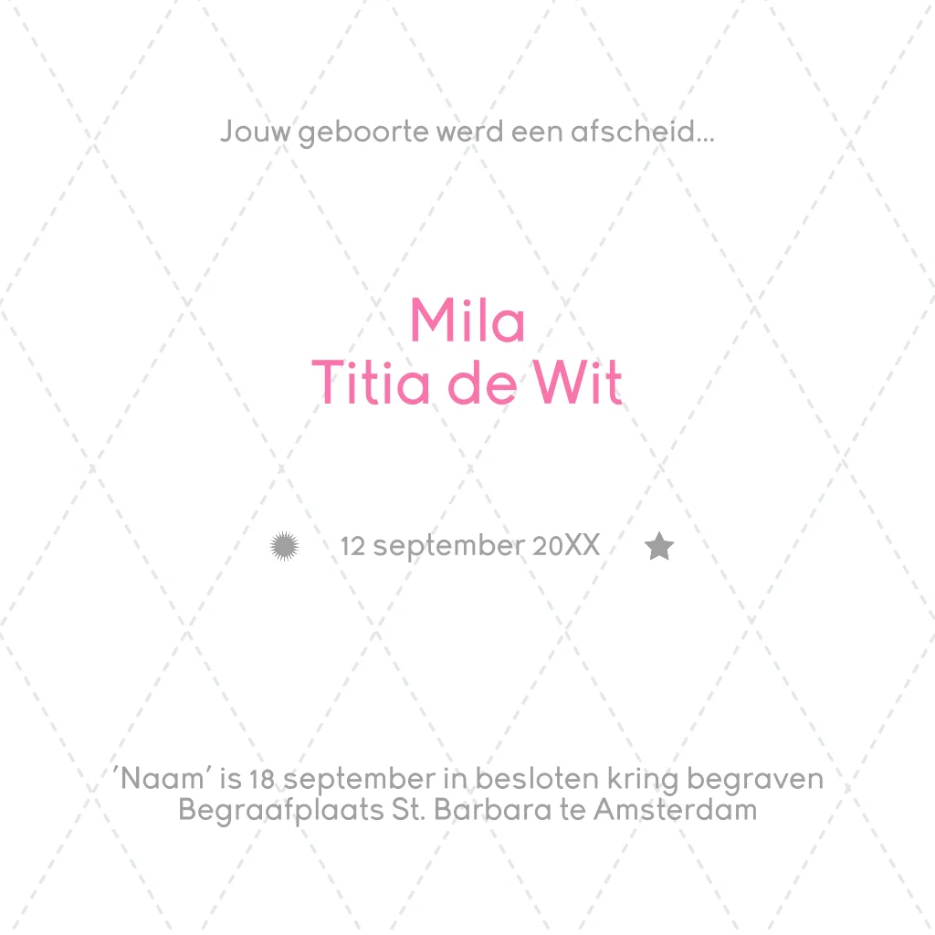 lief rouwkaartje voor meisje met vogeltje en stippellijn ruit