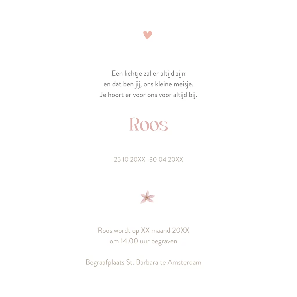 Een prachtige rouwkaart voor een afscheid met de naam in goudfolie in een waterverf krans van blaadjes en bloemetjes