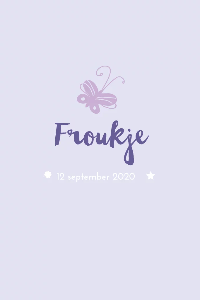 lief staand rouwkaartje voor kind met vlinder en sterretjes