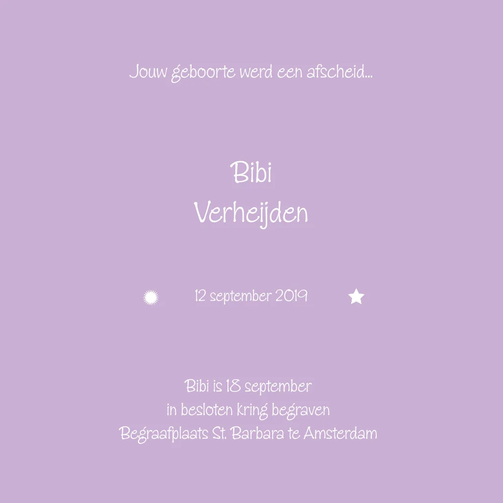 Lief, modern rouwkaartje voor vlinderkindje, de kleuren van de sterren en teksten kun je zelf aanpassen.