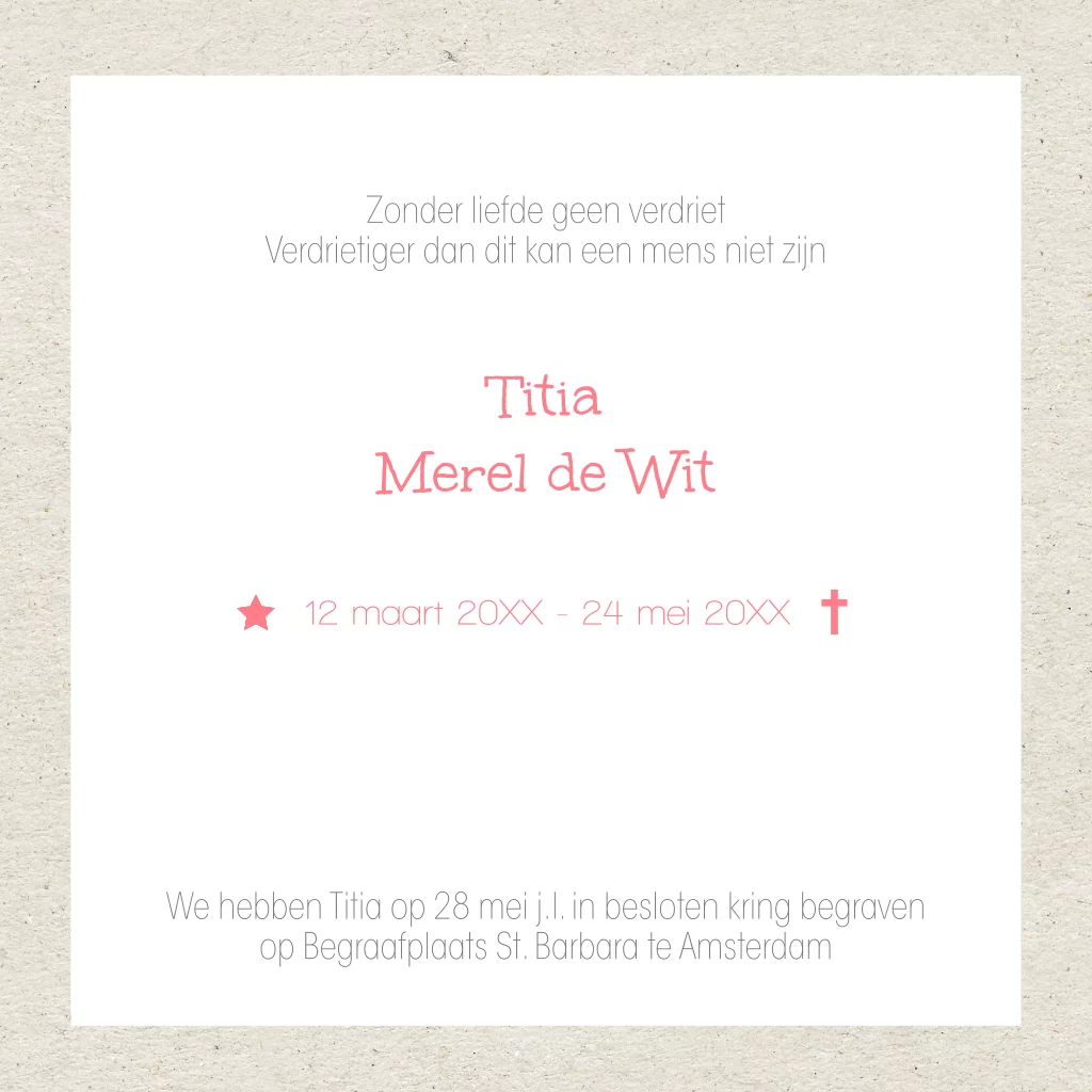 Mooi rouwkaartje voor baby en kind met paardebloem
