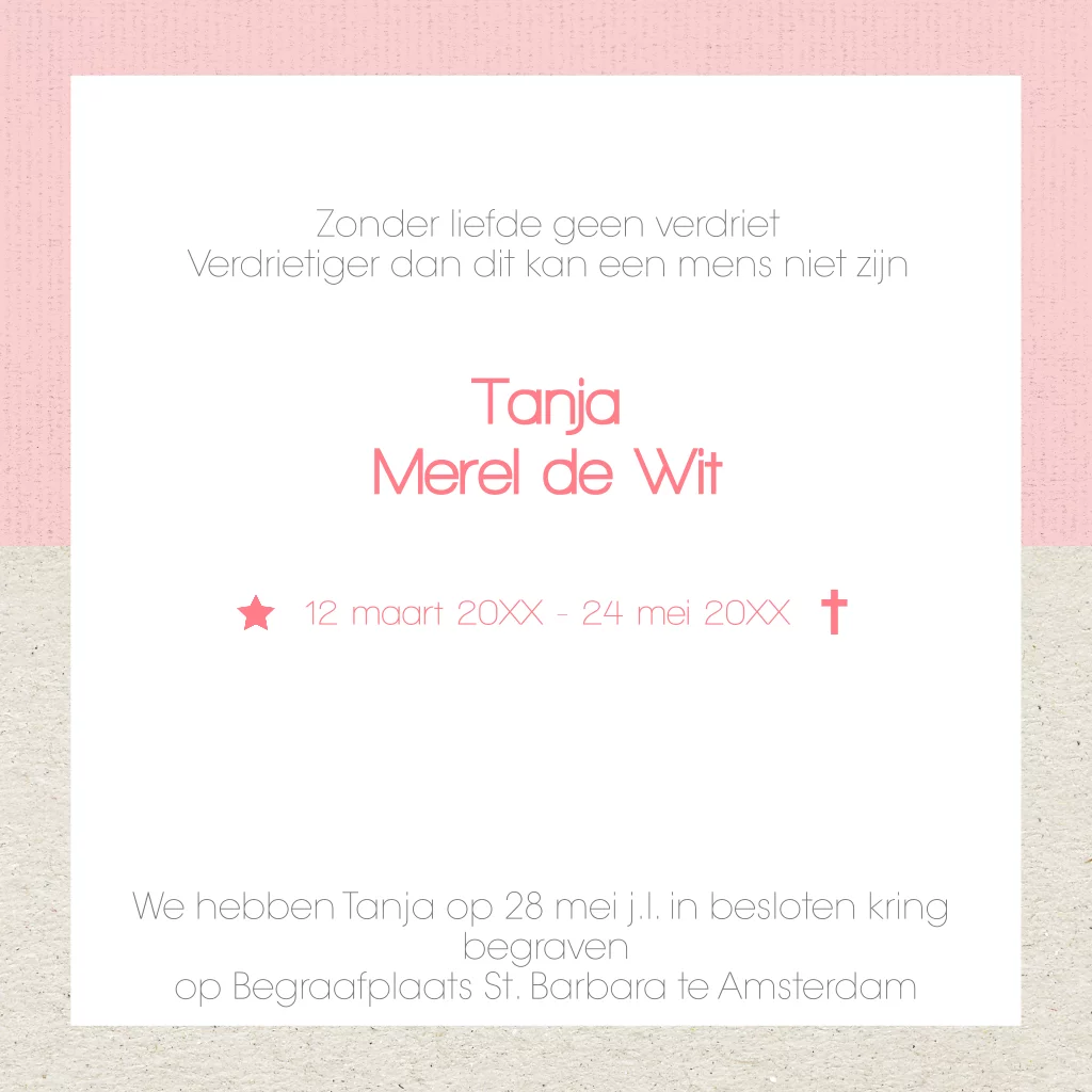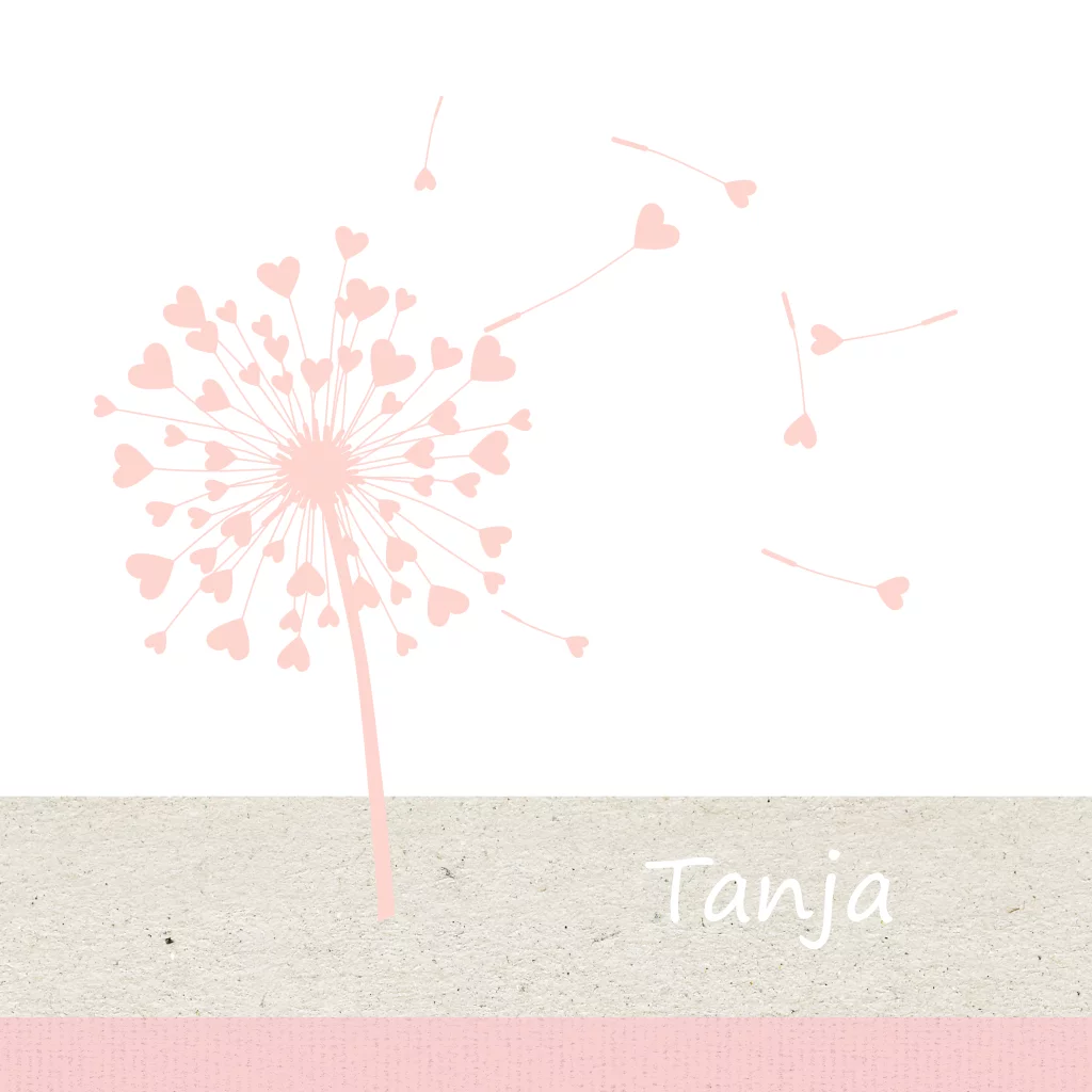 Mooi rouwkaartje voor baby en kind met paardebloem en hartjes