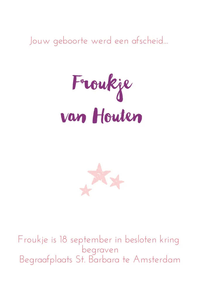 lief staand rouwkaartje voor kind met vlinder en sterretjes