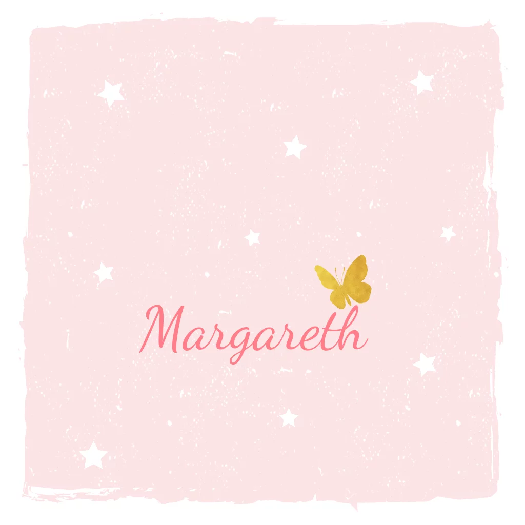 Mooie kinder-rouwkaart voor meisje met gouden vlindertje en sterren op geverfde achtergrond. Stijlvolle rouwkaart voor vlinderkindje.