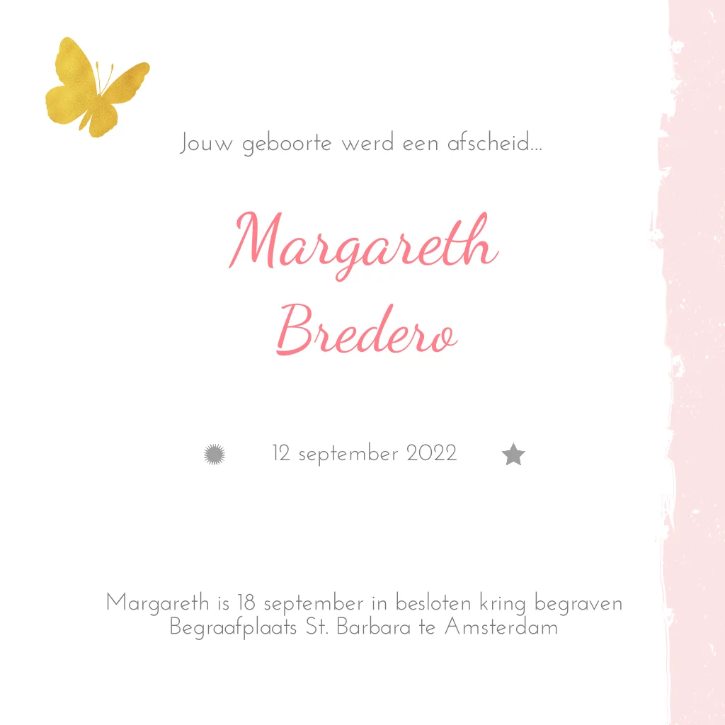 Lief rouwkaartje met gouden vlindertje en waterverf achtergrond