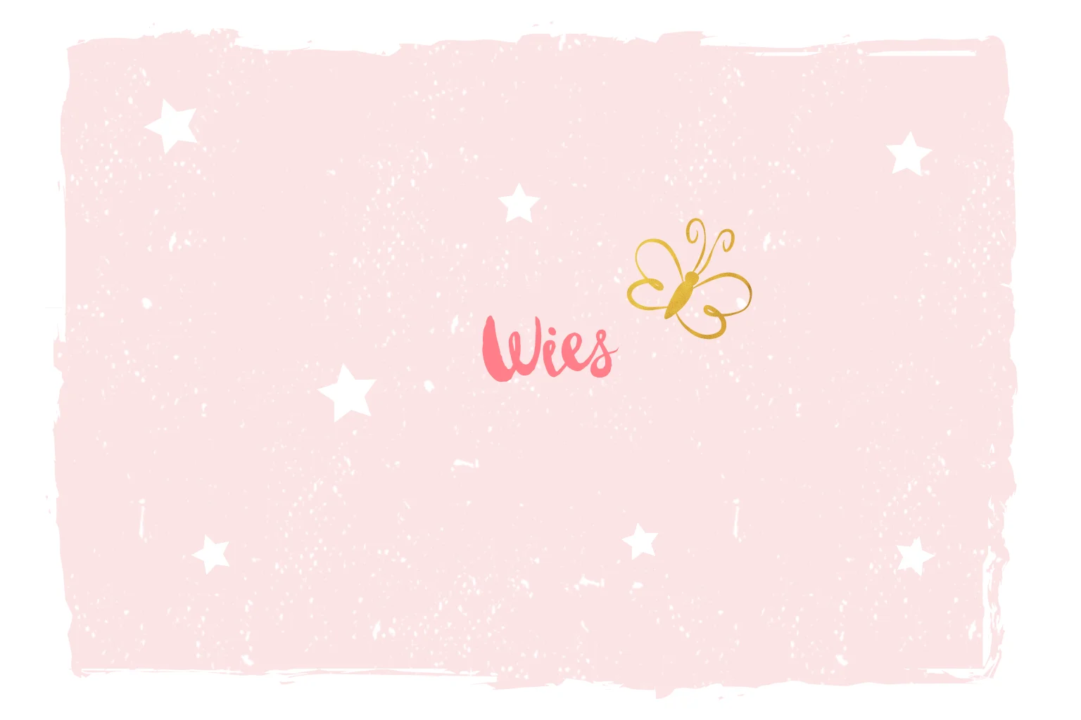Mooi liggend rouwkaartje voor meisje met sterretjes en gouden vlindertjes in zachte kleuren.