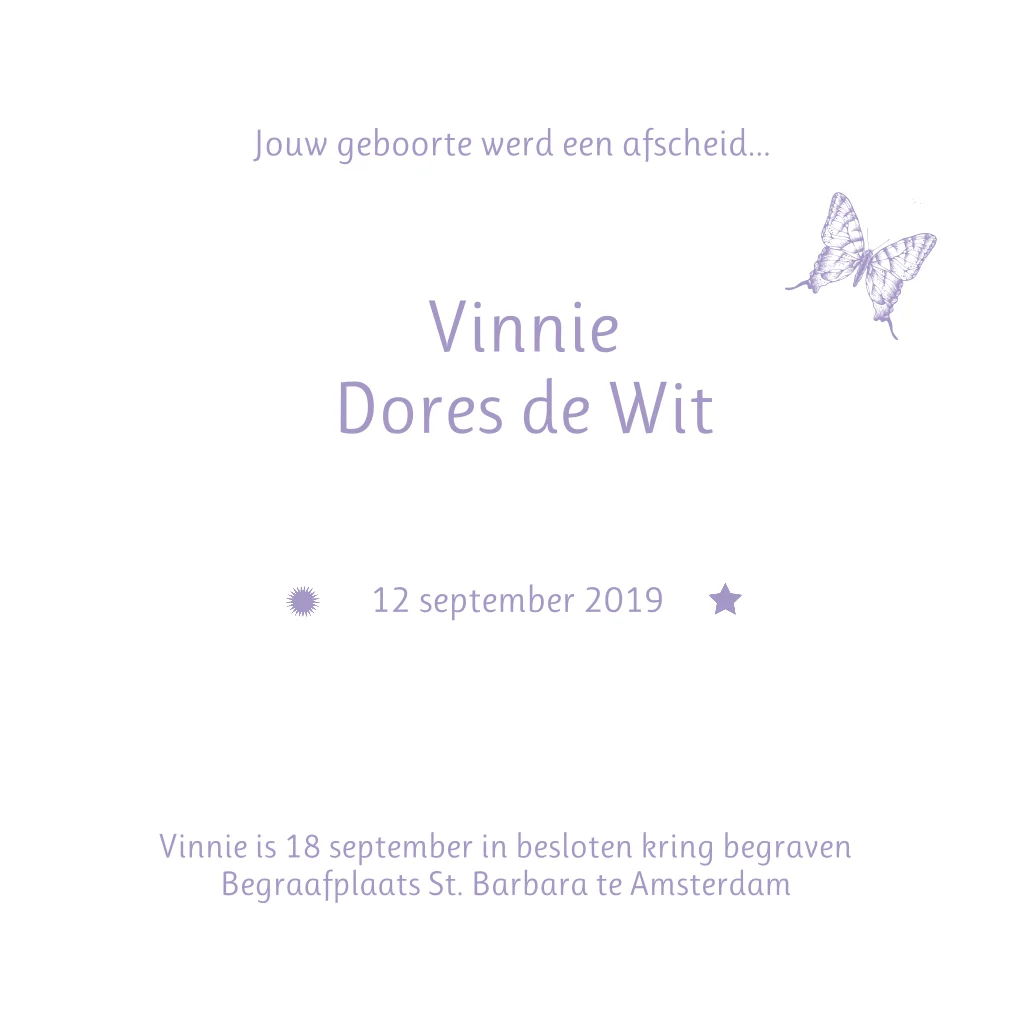 Stijlvolle rouwkaart voor vlinderkindje, de kleuren van de sterren en teksten kun je zelf aanpassen.
