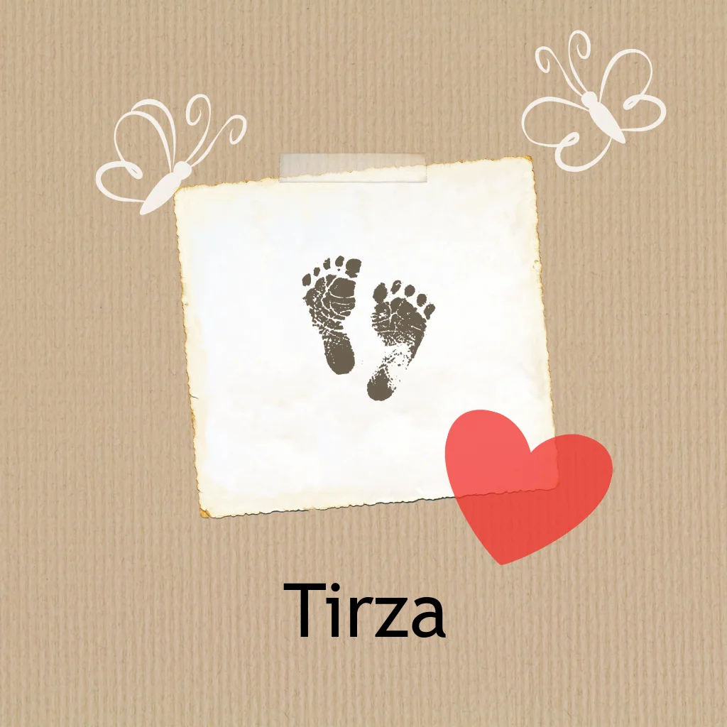 Mooie kinder-rouwkaart voor meisje met foto of voetafdrukje en mooie vlindertjes op kraftpapier achtergrond.