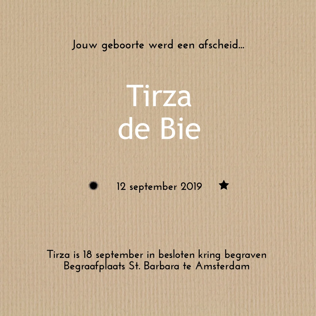Stijlvolle rouwkaart voor vlinderkindje, de kleuren van de teksten kun je zelf aanpassen.