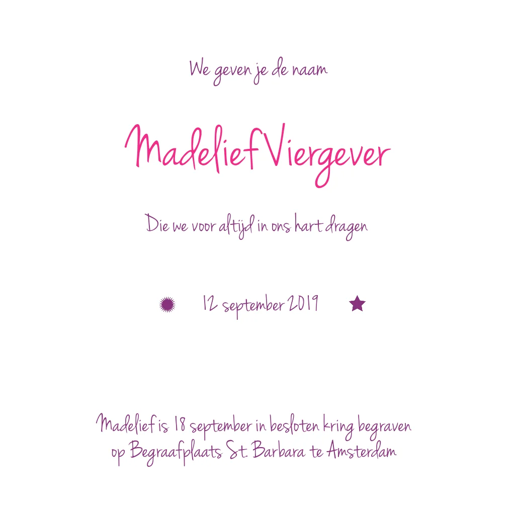 Stijlvolle rouwkaart voor vlinderkindje, de kleuren van de teksten kun je zelf aanpassen.