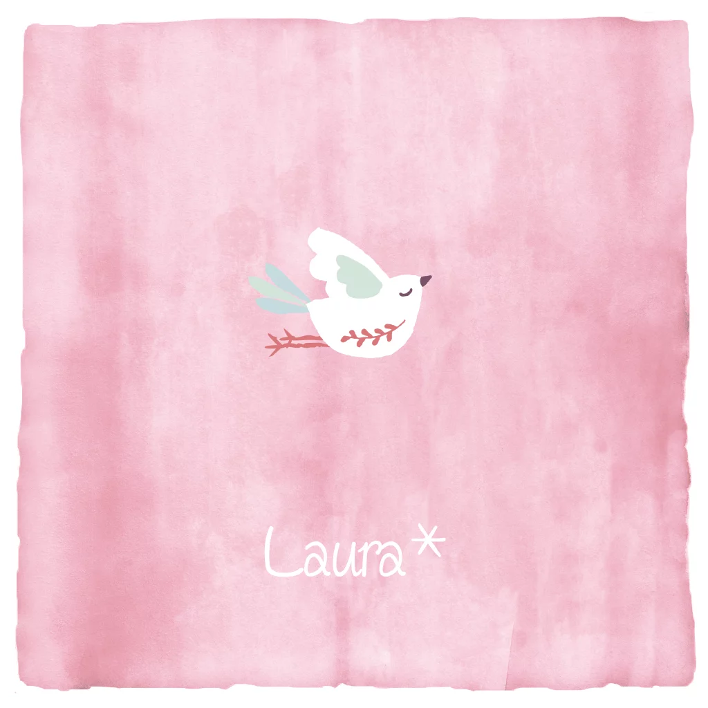 mooi rouwkaartje voor kindje met vogeltje en waterverf achtergrond
