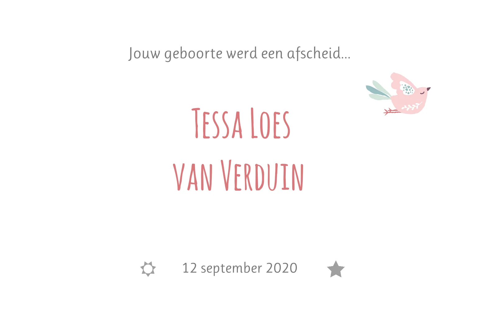 lieve rouwkaart met vogeltje voor vlinderkindje