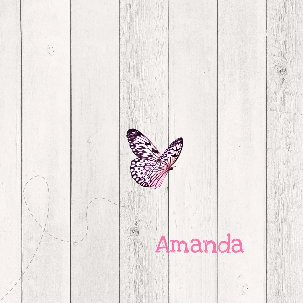 Mooie stijlvolle steigerhout rouwkaart voor meisje met lieve vlindertjes. Lief rouwkaartje voor vlinderkindje met achtergrond van sloophout
