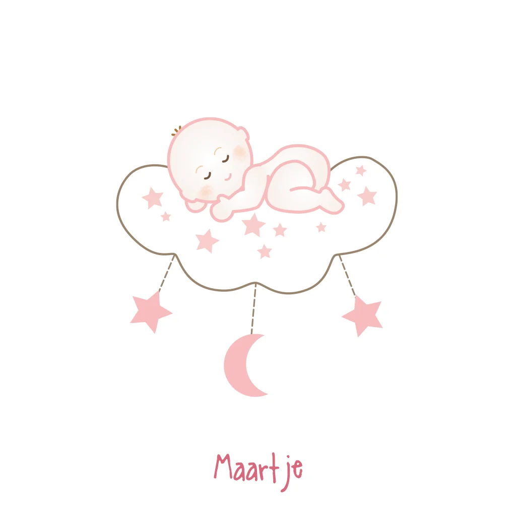 Mooi rouwkaartje voor baby en kind met slapende baby op wolk