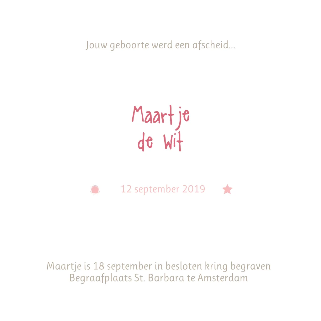 Mooie kinder-rouwkaart met een lieve baby die rust op een wolkje met sterretjes. Lief rouwkaartje geschikt voor vlinderkindje.