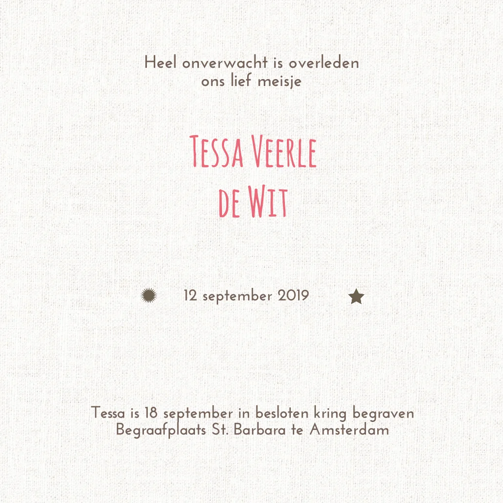 Mooi rouwkaartje voor baby en kind met olifantje voor meisje