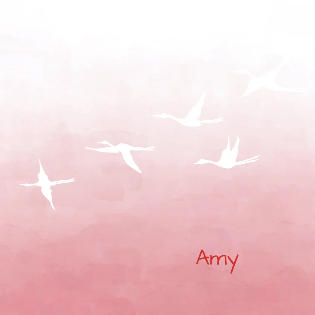 Mooie kinder-rouwkaart voor meisje, met vogeltjes op waterverf achtergrond. Lief modern babyrouwkaartje met waterverf/ aquarel en pastelkleuren voor vlinderkindje, zoontje.