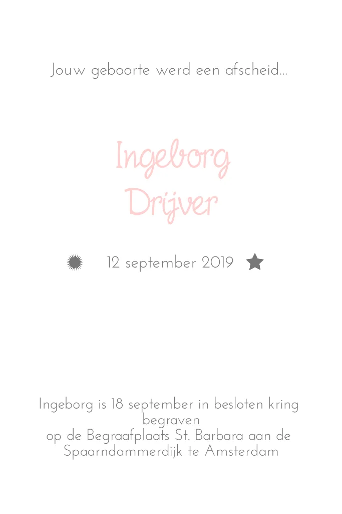 Mooie eenvoudige kinder-rouwkaart met sterren. Stijlvolle rouwkaart voor vlinderkindje, de kleuren van de sterren en teksten kun je zelf aanpassen.
