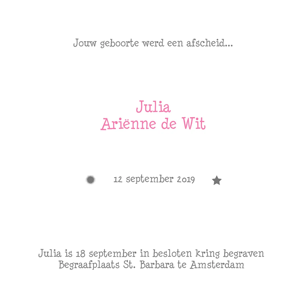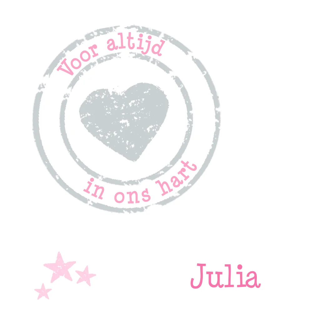 Mooi rouwkaartje voor kind met stempels en hartje voor meisje