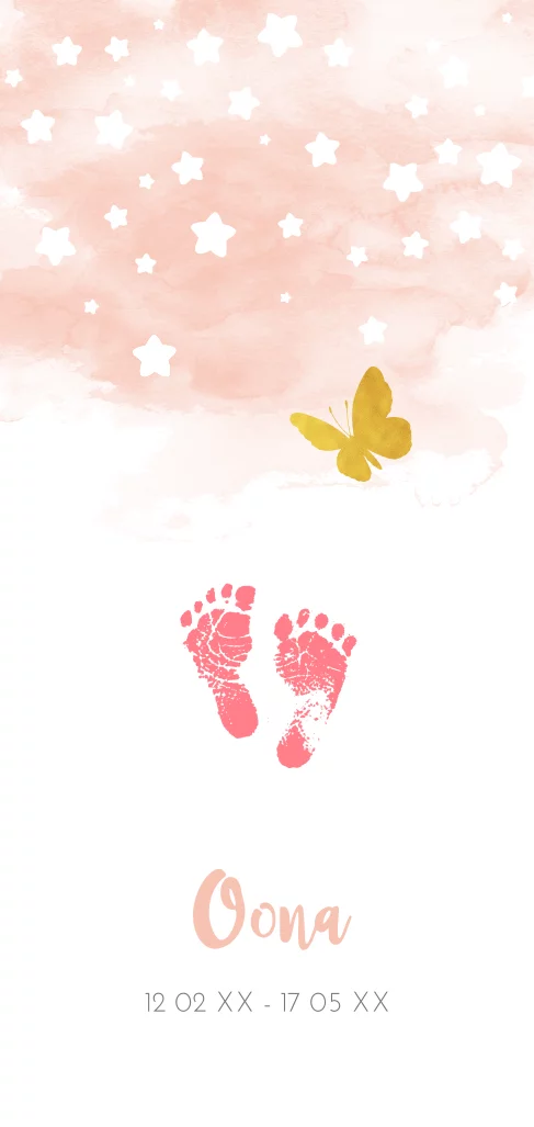 rouwkaart sterretjes voetafdruk hartjes en aquarel