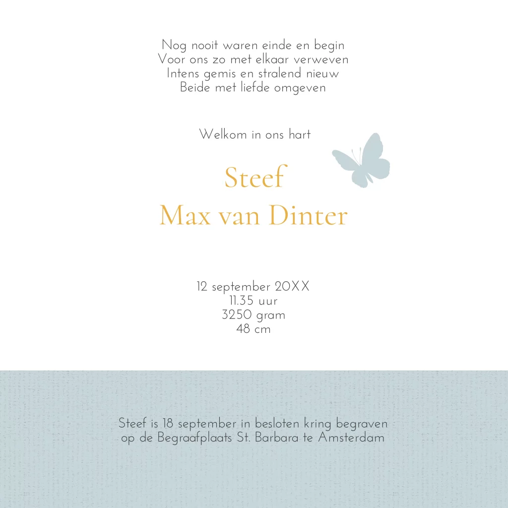 rouwkaartje voor tweeling waarvan een kindje is overleden